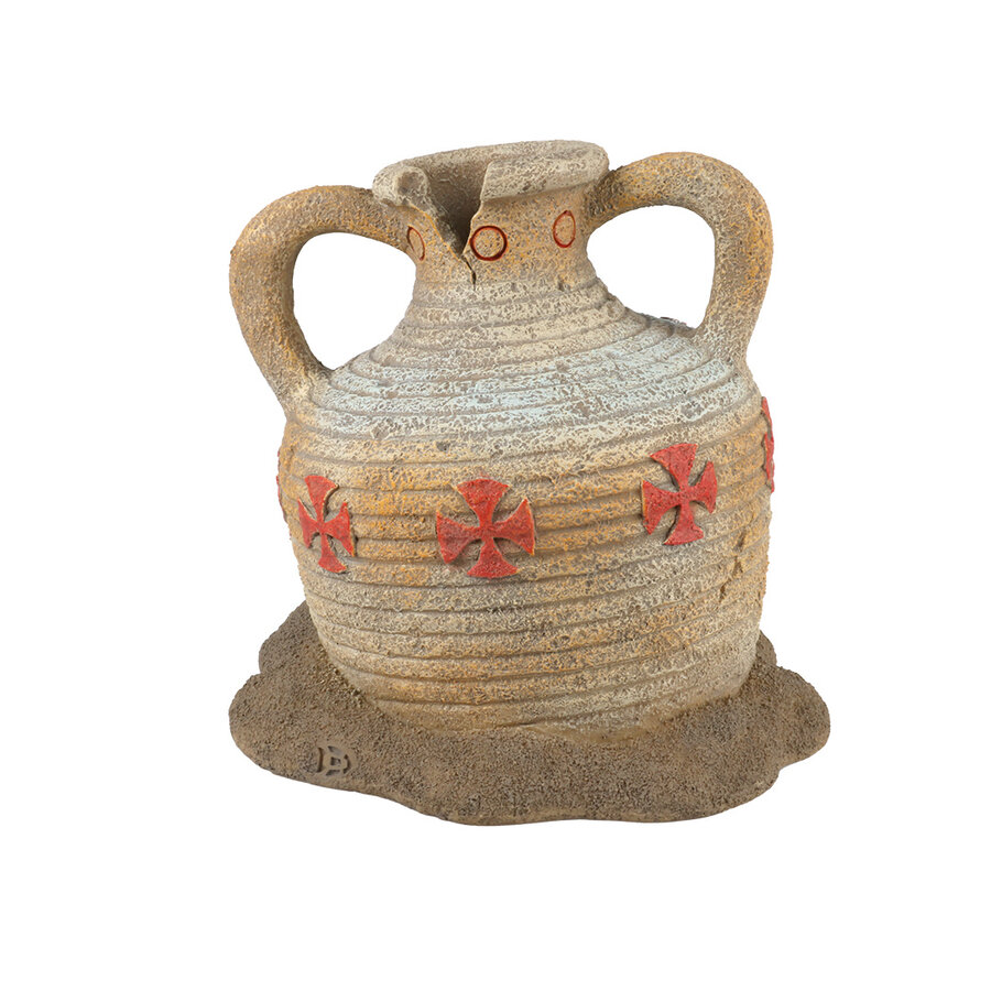 Deze Amphora-vaas is een decoratie uit het Aqua Della Amphora-assortiment. Het is gemaakt van polyesterhars. Deze decoratie is volledig niet giftig en heeft geen invloed op het biologische evenwicht van uw aquarium. De decoratie is geschikt voor zoet- en zoutwateraquaria