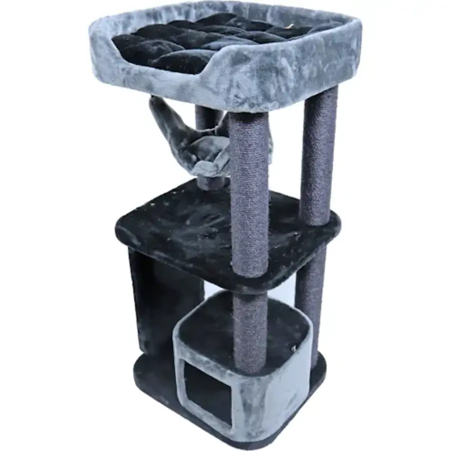 De Boony Krabpaal Yutmaru 117 cm is de ideale krabpaal voor katten en past dankzij het compacte ontwerp en de elegante noir-kleur in vrijwel elk interieur. Dit veelzijdige kattenmeubel biedt jouw kat alles wat hij nodig heeft: een comfortabele slaapmand, meerdere uitkijkplatformen, een schuil- en relaxplek, en zowel sisal krabpalen als een handige krabmat. De Yutmaru is perfect voor katten van alle leeftijden en zorgt voor eindeloos speel- en rustplezier.