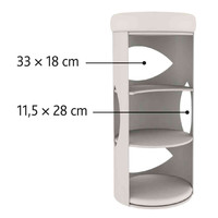 Cat tower Gracia is een toren voor de kat die graag zijn nagels ergens in zit. De toren bevat een schuilplaats met pluche/fleece (polyester) en een ligplateau met afneembare relax-mand en wendbare kussen. Het kussen is met de hand te wassen. De toren is gemaakt met sisal/pluche (polyester): 240 g/m².