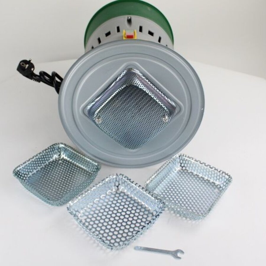 Elektrische graanmolen voor het malen van kleine hoeveelheden meel, b.v. voor het voeren van kippen, konijnen, koeien, varkens en schapen. Dit is de perfecte oplossing als je je eigen veevoer wilt maken. Geschikt voor het malen van maïs, rijst, gerst, haver, rogge, tarwe, gierst of soortgelijke granen. De grootte van het eindproduct wordt bepaald door de zeefmaat. U heeft keuze uit 4 meegeleverde en verwisselbare zeven in de maten 2, 4, 5 en 7 mm. Inhoud van de trechter: 16 Liter. - Inhoud van de bucket: 25 Liter. Deze graanmolen is CE-gecertificeerd. Voltage: 220-240 V - 50-60 Hz. Het motor vermogen van deze graanmolen is 1,0 kW.