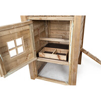 Het Glorenza Kippenhok Hooiberg Pleun is een houten nachthok in charmante hooibergstijl, speciaal ontworpen om jouw kippen een veilige en comfortabele plek te bieden voor de nacht. Dankzij de verhoogde opbouw en duurzame materialen genieten je kippen van optimale bescherming tegen kou, vocht en felle zon, terwijl jij profiteert van een onderhoudsvrij verblijf in je tuin.