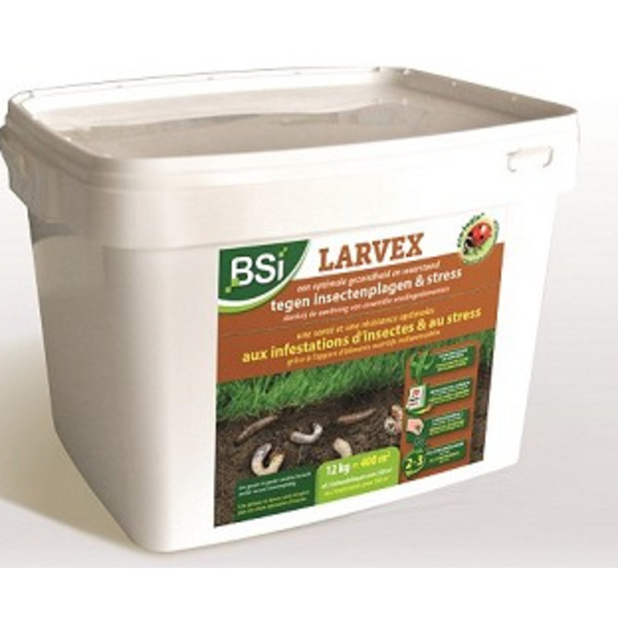 Fijne korrels, gemakkelijk uit te strooien. Verdrijft engerlingen, emelten en andere bodeminsecten. Larvex is een complete N-P-K meststof met magnesium (7-3-4+2). Larvex verhoogt de planteigen weerstand van het gazon tegen de nadelige gevolgen van bodeminsecten. Door sterke stimulatie van de grasplant, onder meer door deze toegevoegde voedingselementen, gaat het gazon een krachtig nieuw wortelstelsel ontwikkelen. 3 à 4 weken na de behandeling groeit het gazon opnieuw keurig dicht.