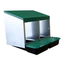 Dit legnest van metaal heeft twee vakken waarin de eieren automatisch worden gerold. Hierdoor kunnen ze gemakkelijk worden verzameld en blijven ze buiten bereik van de kippen. Het legnest heeft een schuin dak om te voorkomen dat kippen erop gaan zitten.