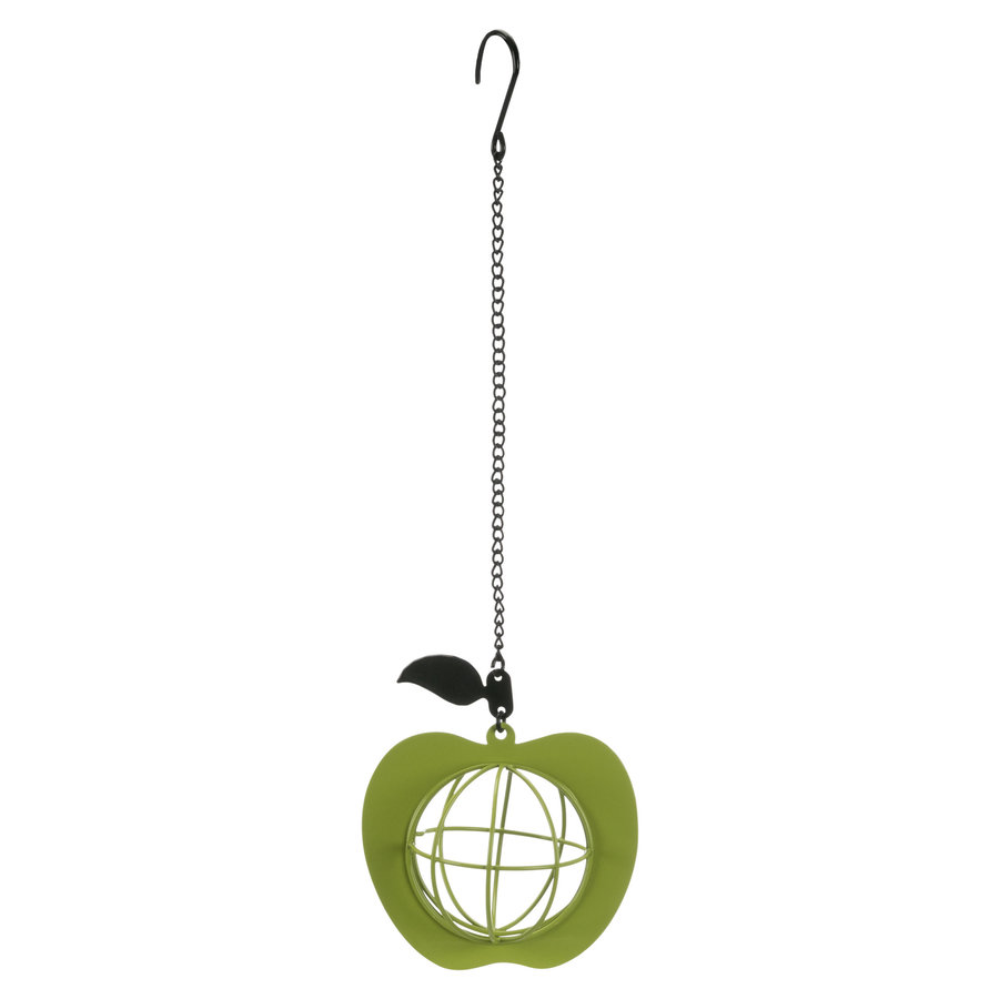 Leuke metalen vetbol of mezenbolhouder. De houder is van metaal en gegoten in de vorm van een appel. Geschikt voor 1 mezenbol per keer. De houder is gemakkelijk op te hangen door de meegeleverde hanger.