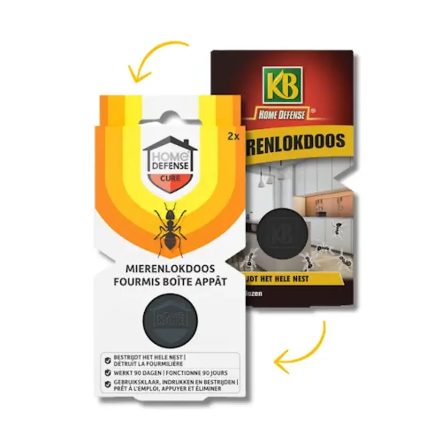De Home defense bestrijdt effectief mieren en hun nesten in uw huis. Het middel met de actieve stof wordt door de werksters in het het nest meegenomen om de mierenkolonie ermee te voeden. Na het eten van het middel zullen de meeste mieren binnen het nest sterven.