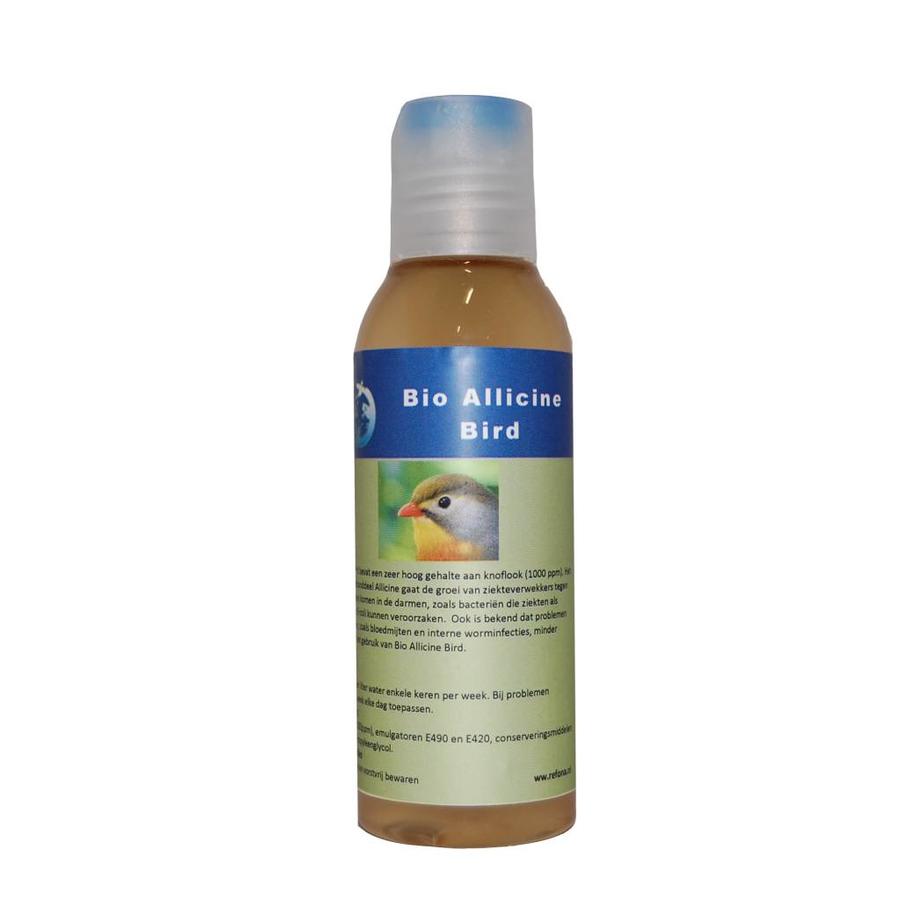 Bio Allicine Bird bevat een hoog gehalte aan knoflook (1000 ppm). Bio Allicine Bird gaat de groei van ziekteverwekkers in de darmen tegen. Dit zijn bijvoorbeeld bacteriën die ziektes als Salmonella en E-coli kunnen veroorzaken. Ook kunnen de problemen met parasieten zoals bloedmijten en interne worminfecties minder worden door het gebruik van Bio Allicine Bird.