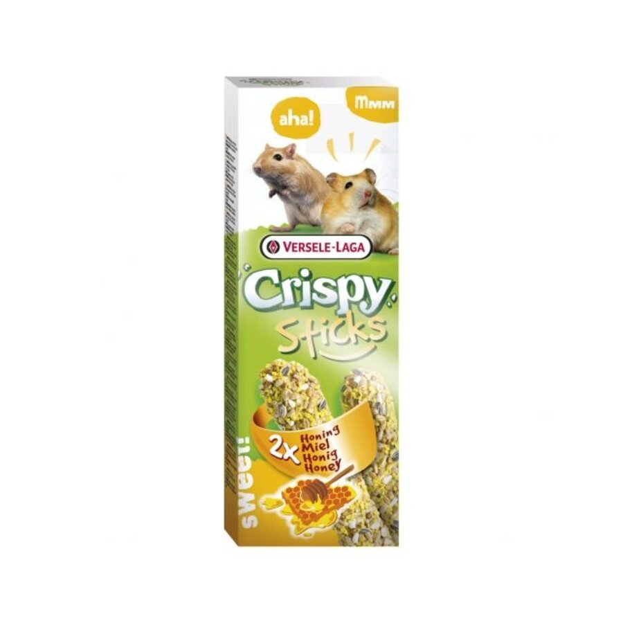 Versele-Laga Crispy Sticks Hamster & Gerbil zijn de ideale snack voor jouw geliefde knaagdier. Deze ovengebakken knaagstangen zijn niet alleen heerlijk, maar ook verrijkt met honing voor een extra zoete smaak. Je hamster of gerbil zal dol zijn op dit lekkere tussendoortje!