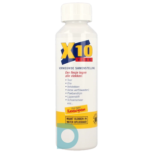 Laat vlekken geen blijvende herinnering worden. X10 Vlekkenwater 250 ML is dé snelle en doeltreffende oplossing voor het verwijderen van allerlei soorten vlekken uit textiel, tapijt, kleding of meubilair. Dankzij de krachtige formule maak je zonder moeite korte metten met hardnekkige vlekken, zonder het materiaal te beschadigen.